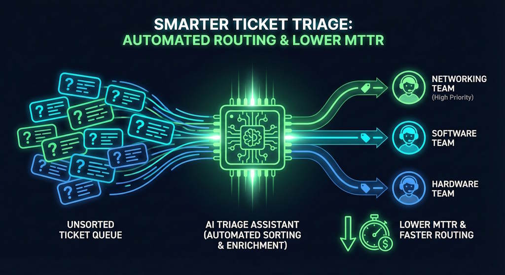 The result is smarter triage, faster routing to the right people and a lower Mean Time to Resolution (MTTR), without anyone manually reviewing dozens of new requests one by one.
